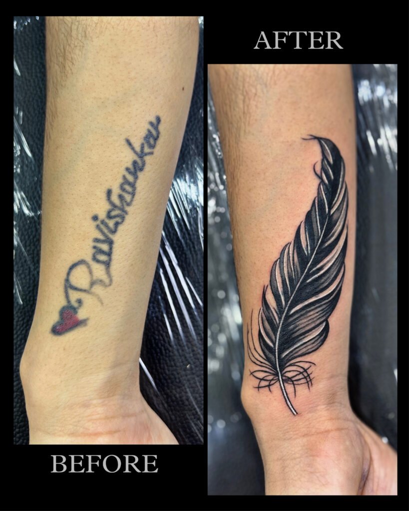Wrist Cover-Up – From a Name Tattoo to an Elegant Feather.
